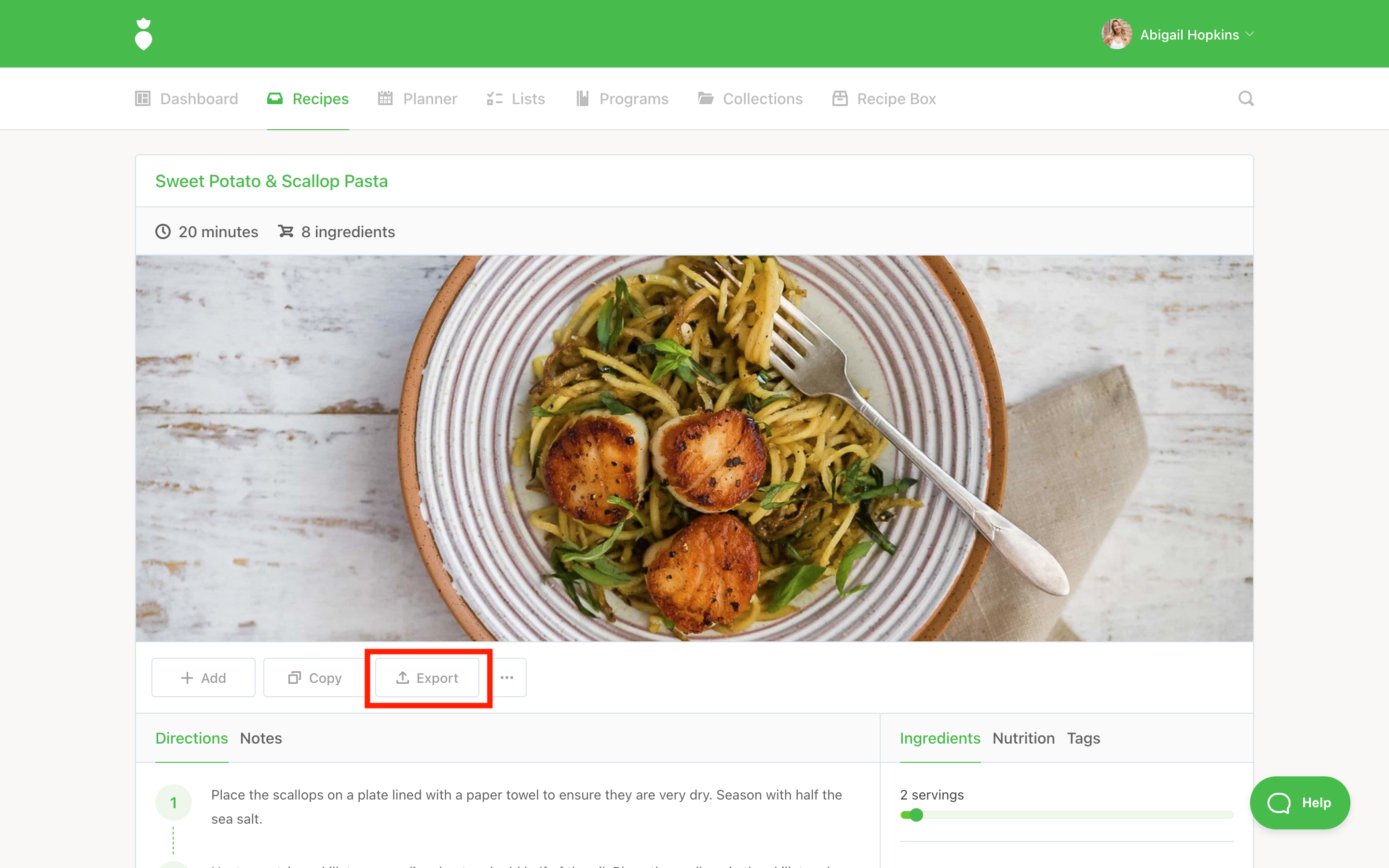 Tip: To export a single recipe from That Clean Life, simply hit the export button when looking at the recipe you'd like to export. We'll turn it into a professional PDF and add your business branding.