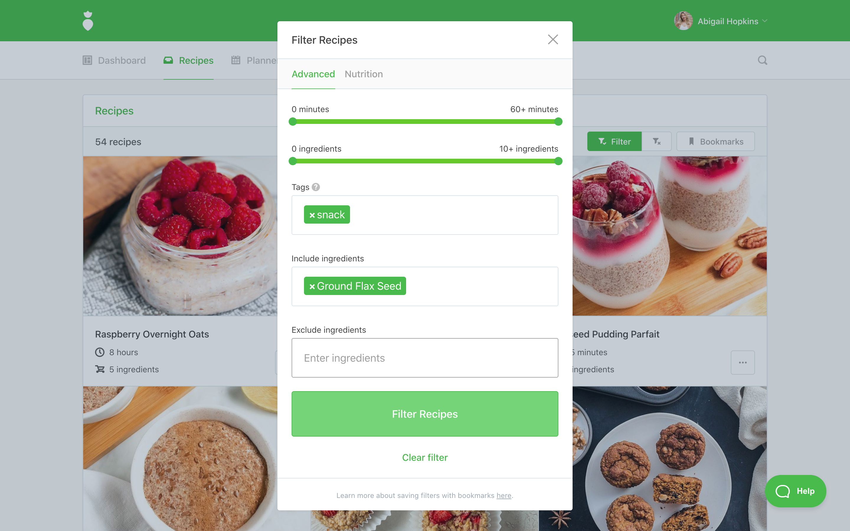 To find snack recipes that are suitable for the luteal phase, I could search for snacks that are sugar-free and high in fat, protein and fiber. I'd then add these to the same collection called, "Healthy Snacking for a Healthy Cycle".