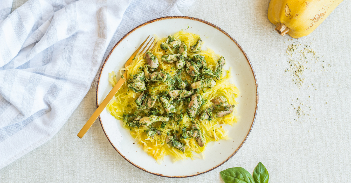 Click here to add Spaghetti Squash with Hemp Pesto Chicken to your client’s That Clean Life meal plan.