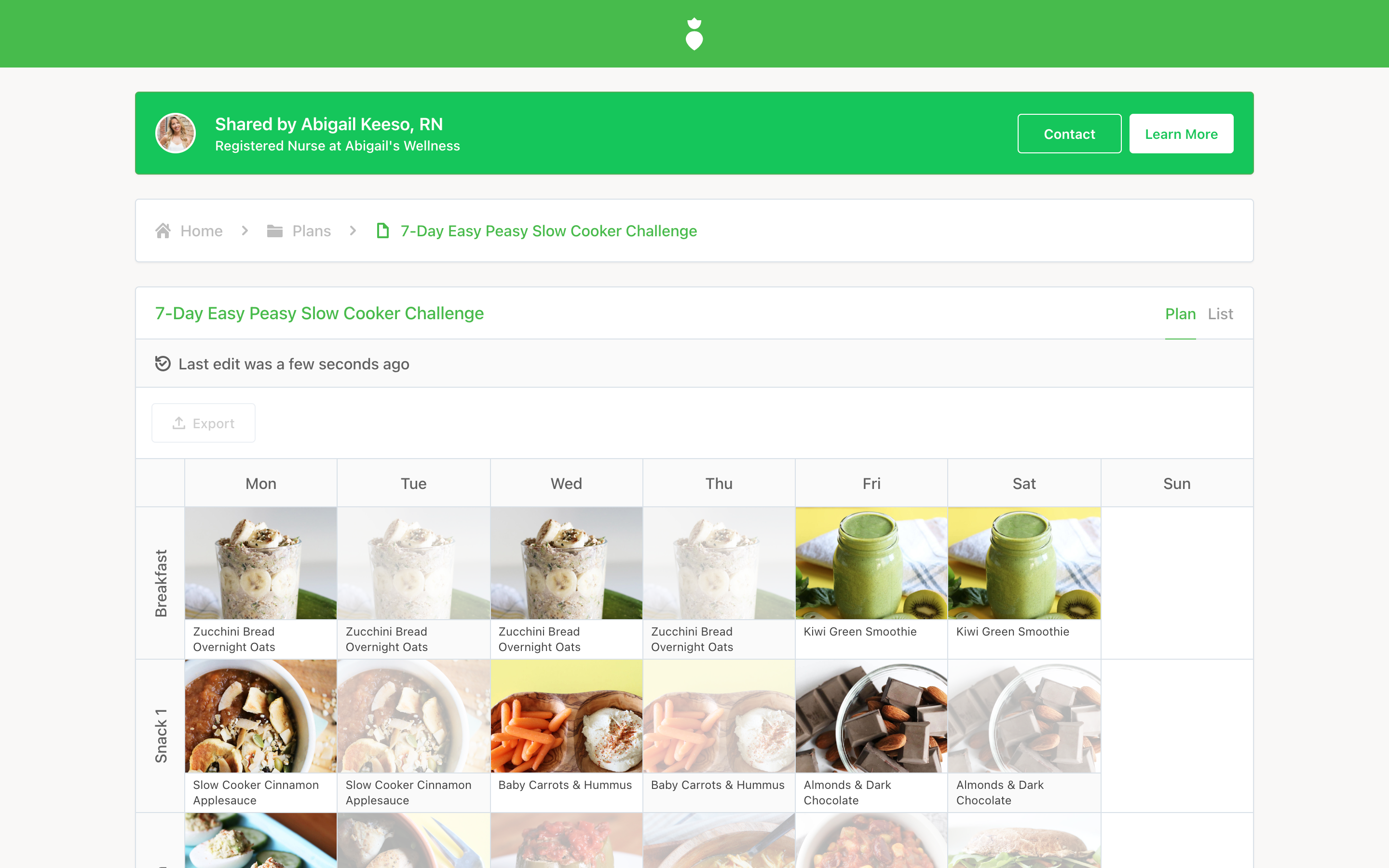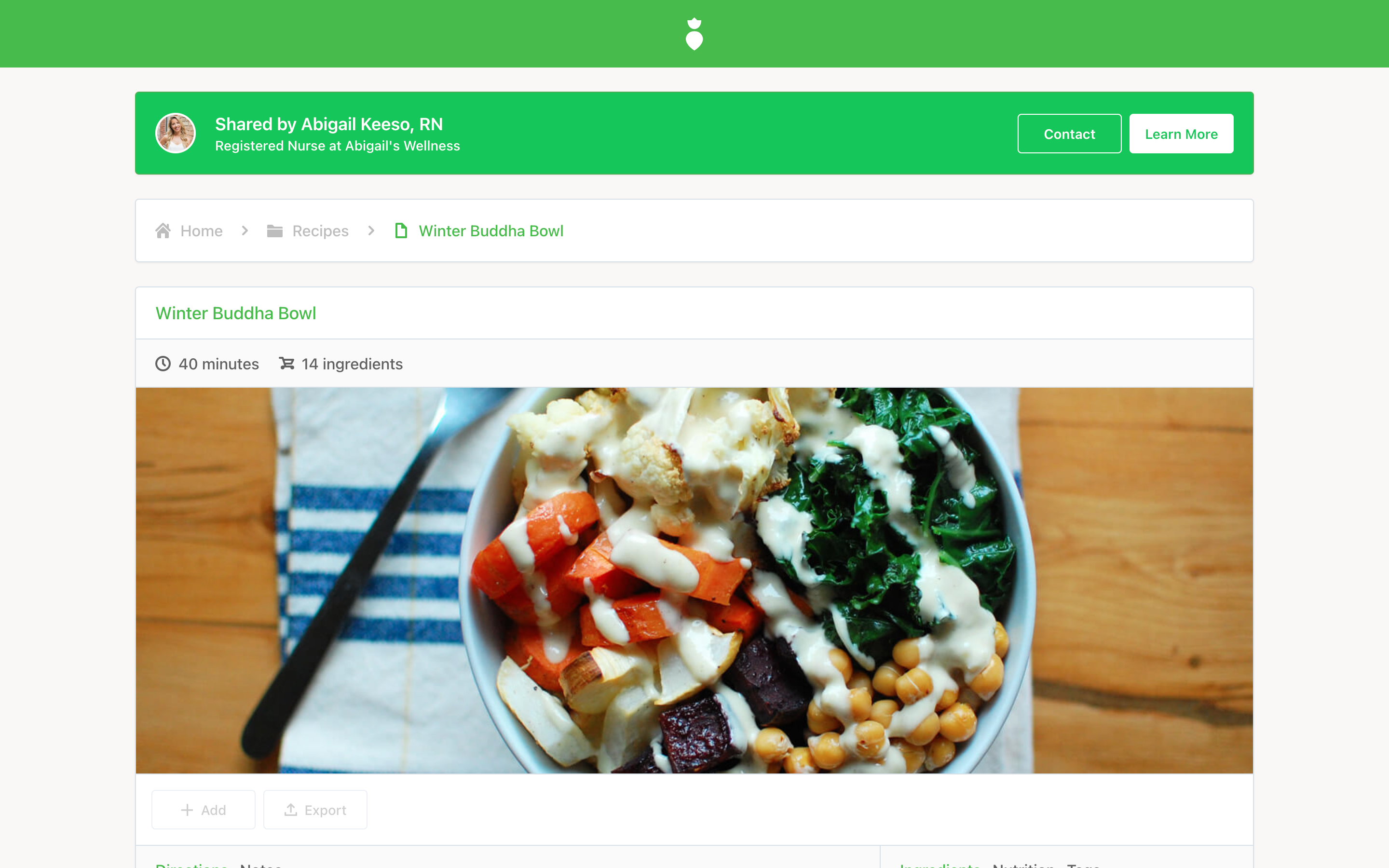 Make a copy of the Healthy & Affordable Program, then add it to a Collection. Turn on Sharing to share the link to the Collection with your cooking class participants. This will guide the participants through your cooking class, and give them a plan to follow afterward.